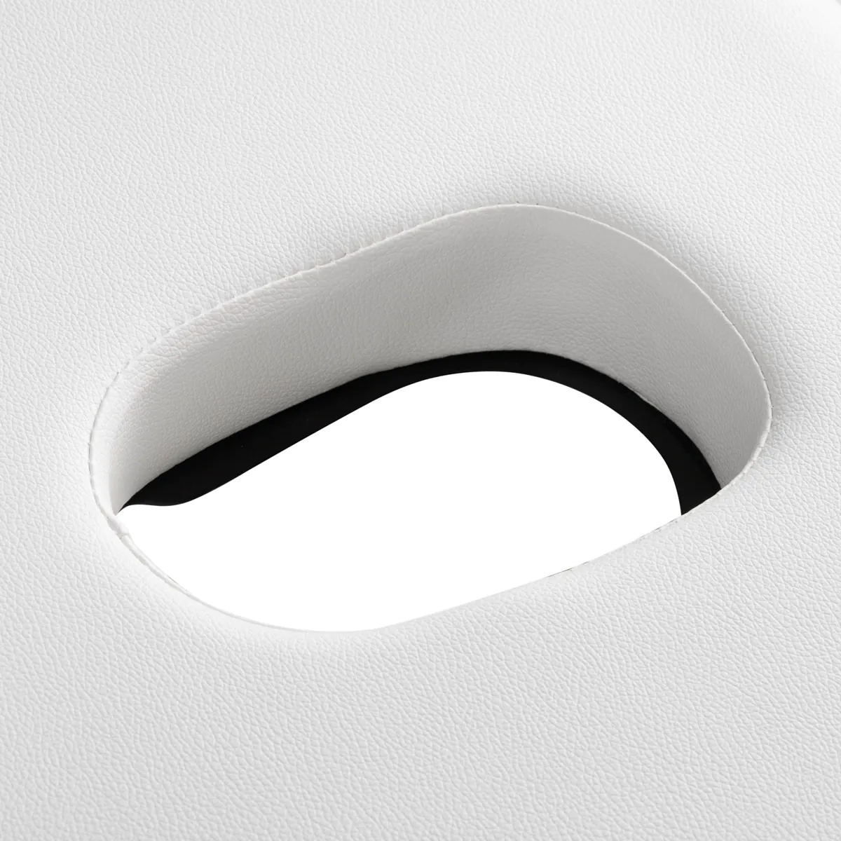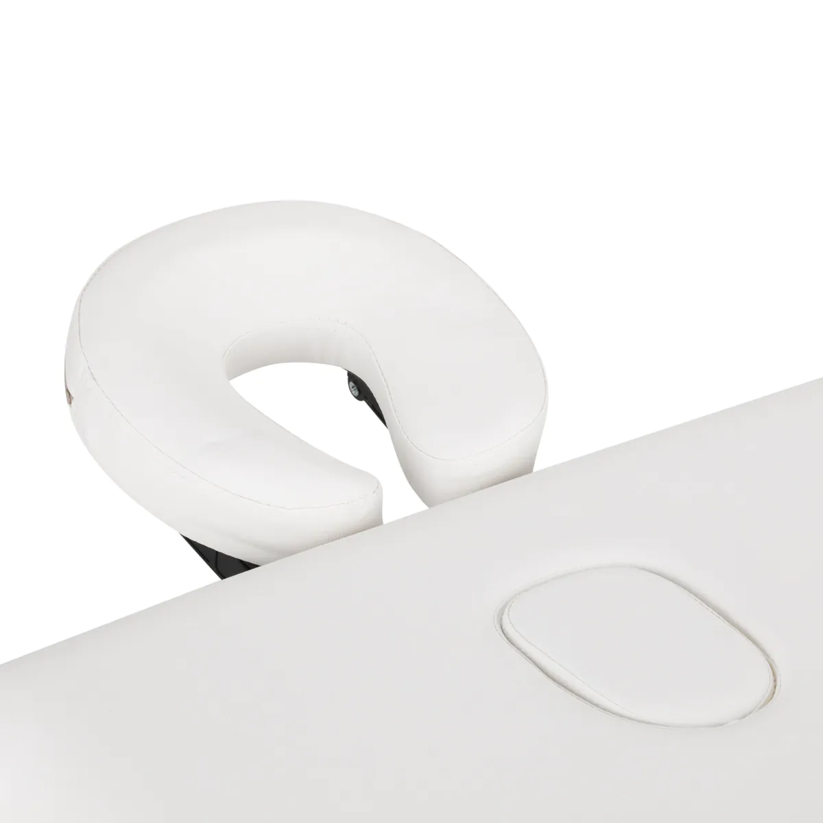 Για θεραπείες σώματος: Το προσκέφαλο αφαιρείται εύκολα, αποκαλύπτοντας την ειδική υποδοχή προσώπου (face hole) στην επιφάνεια του κρεβατιού. Όταν δεν χρησιμοποιείται, η τρύπα καλύπτεται από την αντίστοιχη τάπα, επαναφέροντας την επιφάνεια σε μια ενιαία, καλαίσθητη και ομοιόμορφη εμφάνιση.